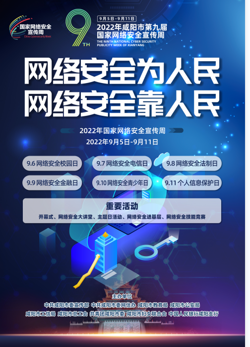 2022年咸陽市第九屆國(guó)家網(wǎng)絡(luò)安全宣傳周。