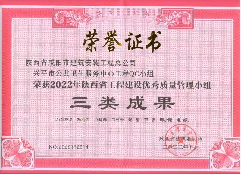 上一篇:2024年度咸陽市建設(shè)工程“秦陽杯”榮譽(yù)證書