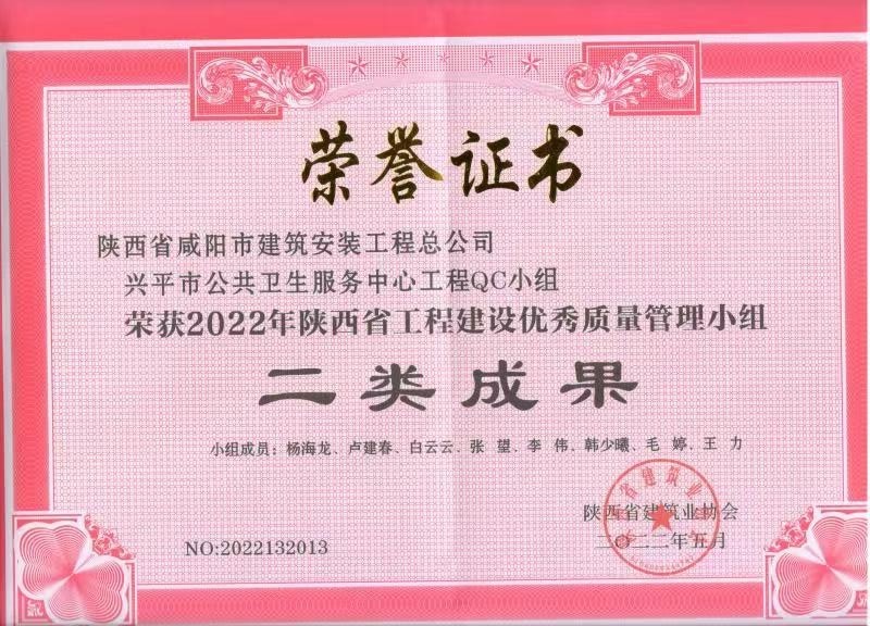 2022年度QC小組活動成果證書